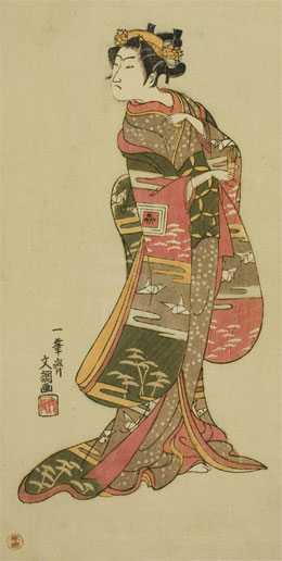 The actor Ichikawa Monnosuke II held the name of Ichikawa Benzô I [1] from the 11th lunar month of 1762 to the 10th lunar month of 1770. |