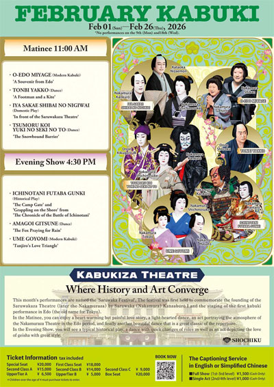 | Dates | 1 ~ 26 February 2026 Saruwakasai Nigatsu Ôkabuki Saruwaka Festival February Grand Kabuki |