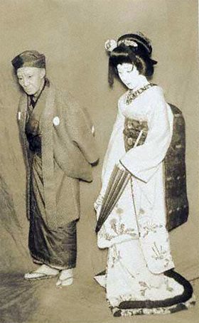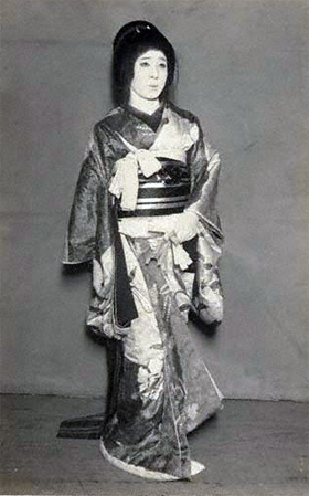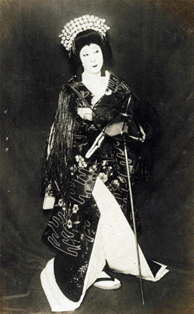 The actor Nakamura Fukusuke V playing the role of a shirabyôshi in the dance "Asazuma Bune", which was staged in September 1926 at the Kabukiza |