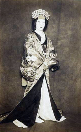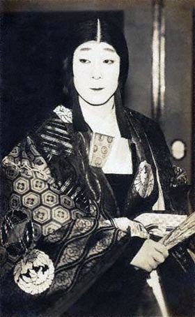 The actor Nakamura Fukusuke V playing the role of Ono no Komachi in the dance-drama "Seki no To", which was staged in February 1931 at the Kabukiza |