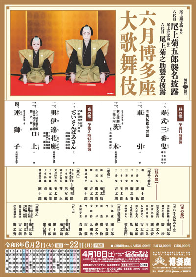 | Dates | 2 ~ 22 June 2026 Rokugatsu Hakataza Ôkabuki June Hakataza Grand Kabuki |