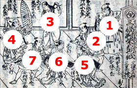 Others actors were Fujita Kuhachirô [4], Fukuoka Yagoshirô [3], Yokoyama Kameemon, Fukuyama Matagorô, Sugimura Hachirôji [5], Mihogi Shichitarô [6] & Kirinami Senju II. [1] "I worked on this kaomise page in December 2025, 300 years afterwards!" (Shôriya Aragorô) [2] Our definition of star is a ranking equal or above jô-jô-kichi. [3] He played the role of Kameyama Zendayû. [4] He played the role of Manzai Tôemon. [5] He played the role of the Kakinomoto kôshitsu. [6] He played the role of Akashi-no-Mae. |
