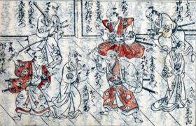 The kaomise drama "Ôkamado Hatsumen Bako" was produced by Sanogawa Mangiku at Hayagumo Chôdayû's theater in Kyôto in the 11th lunar month of 1725 [1].