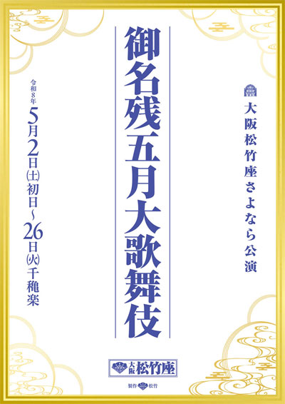 | Dates | 2 ~ 6 May 2026 (Onagori Gogatsu Ôkabuki) Farewell May Grand Kabuki |