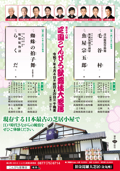 | Dates | 4 ~ 20 April 2025 Shikoku Konpira Kabuki Ôshibai Shikoku Konpira Kabuki Grand Theatre |