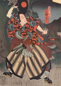Mimasu Daigorô IV playing the role of Ono no Sadakurô in the drama "Kanadehon Chûshingura" (print made by Utagawa Hirosada 1848) |