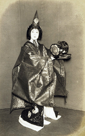 The actor Nakamura Fukusuke V playing the role of a shirabyôshi in the dance "Asazuma Bune", which was staged in September 1926 at the Kabukiza |
