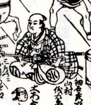 Line number: SHODAI (I) Existence: ??? ~ ??? Connection: Master: Yamamura Kazaemon Career: 1711: he performed in Kyôto as a katakiyaku; his first stage name was Ôyama Tamiemon. Fall 1712: he settled in Ôsaka and became a disciple of Yamamura Kazaemon. 12th lunar month of 1712: he became tachiyaku, took the name of Yamamura Giemon I and performed in Azuma Sanpachi's kaomise drama "Enmei Kobukuro". 11th lunar month of 1713: Giemon became jitsuaku and played in Ôsaka the role of Enkai in the kaomise drama "Yoyo Meoto Tsuru no Mago", which was produced by Arashi Sanjûrô I at Shioya Kuroemon's theater. 1st lunar month (spring?) of 1715: first Kabuki adaptation of Chikamatsu Monzaemon's drama "Daikyôji Mukashi Goyomi", which was entitled "Daikyôji" and was staged in Ôsaka; Giemon played the role of Ishun [casting]. 11th lunar month of 1715: Giemon played the role of Irimatsu Shigezô in the kaomise drama "Ugashin Kogane no Hokora", which was produced by Sawamura Chôjûrô I and celebrated the shûmei of Takeshima Kôzaemon II. 11th lunar month of 1718: Giemon played in Ôsaka at the Kita no Shinchi Shibai the role of Yoneemon in the kaomise drama "In'yô Inui no Machi-zukuri". Fall 1720: Giemon went back to Kyôto. 11th lunar month of 1720: he changed his first name to Gizaemon (the first ideogram was changed) and performed in Kyôto in the kaomise drama "Shin Yakata Fukutoku no Kado" which was produced by Matsumoto Shigemaki and Sodesaki Wakaura I. 1st lunar month of 1721: Gizaemon's rank in the Kyôto hyôbanki, jitsuaku section, was jô-jô-(shiro)hankichi (superior - superior - (white) half excellent) [visual]. 11th lunar month of 1722: Gizaemon played in Kyôto at Miyako Mandayû's theater the role of Hara Tsunaemon in the kaomise drama "Ôbashira Kogane no Sazare Ishi", which was produced by Segawa Kikunojô I. Fall 1723: Gizaemon went to Ôsaka. 11th lunar month of 1723: he changed his first name back to Giemon, became tachiyaku and played at the Ônishi no Shibai the role of Yatôta in the kaomise drama "Fukujukai Kogane no Minato", which was produced by Sakakiyama Shirotarô I. 1st lunar month of 1724: Giemon's rank in the Ôsaka hyôbanki, tachiyaku section, was jô-jô (superior - superior) [visual]. He shared the same rank with Wakaura Kinjûrô, Sadoshima Chôgorô I, Sakakiyama Shirotarô I and Arashi Sangorô I. 11th lunar month of 1724: he became katakiyaku and played at the Kado no Shibai the role of Wada Gonzô in the kaomise drama "Banzei no Minato", which was produced by Arashi San'emon III. 1st lunar month of 1725: Giemon's rank in the Ôsaka hyôbanki, katakiyaku section, was jô-jô (superior - superior) [visual]. 11th lunar month of 1725: Giemon played at the Kado no Shibai the role of Kumakaze in Kaneko Kichizaemon's kaomise drama "Wagô no Futabashira", which was produced by Arashi San'emon III and celebrated the shûmei of Murakami Kinjûrô. 11th lunar month of 1727: Giemon played at the Naka no Shibai the role of Sazareishi Hideemon in the kaomise drama "Imosegami Aioi no Futabayama". 1st lunar month of 1728: Giemon played in the same theater the roles of Ishihara Yasaji and Dobashi Gengoemon in the new year drama "Shôgi Gunpô Ryûko no Maki"; this was his last-recorded performance on a Kabuki stage; no record afterwards. Comments: Yamamura Giemon I was active in Kamigata from the beginning of the 1710s to the end of the 1720s. He was able to perform a wide range of male roles, as a katakiyaku, a jitsuaku or a tachiyaku. He was said to be good in jitsugoto. He used two different ideograms for his two first names, Giemon [writing 1; writing 2] and Gizaemon [writing 1; writing 2].