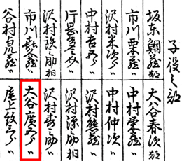 The name of Ôtani Hirogorô I in the 1797 Edo hyôbanki (the zone within the red box) |