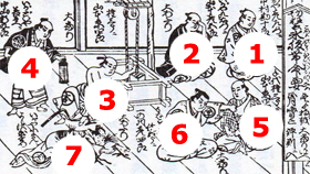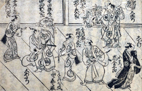 Others actors were Nakamura Shirogorô II & Tsuzuki Daizaburô in the roles of Nagasakiya Jinroku & the Igaya decchi. [1] "I worked on this kaomise page in November 2025, almost 300 years afterwards!" (Shôriya Aragorô) [2] Our definition of star is a ranking equal or above jô-jô-kichi. [3] Ikoma Hachirozaemon or Ikoma Hachirôzaemon? Two possible readings. [4] Ikuyo-hime. [5] He also played the roled of the rônin Jûheiji. |