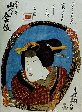 Yamashita Kinsaku IV portraying Osugi in a print made by Utagawa Kunisada I The Yamashita Kinsaku line of actors |