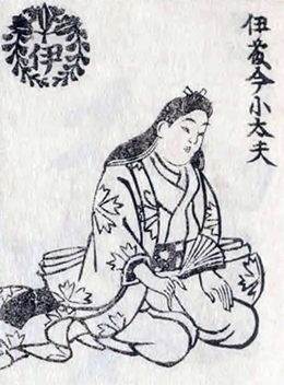 Itô Kodayû I as depicted in an illustration from the book "Yarô Daibutsushi" (1668) |