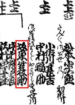 The name of Bandô Minosuke III in the 1848 Edo hyôbanki (the zone within the red box) |