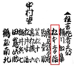 The name of Matsumoto Kôji I in the 1829 Edo hyôbanki (the zone within the red box) |