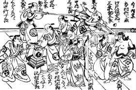 The new year sogamono drama "Tsurukame Wakayagi Soga" was produced by Ichimura Takenojô IV and was staged in the 1st lunar month of 1721 in Edo at the Ichimuraza with the following casting: