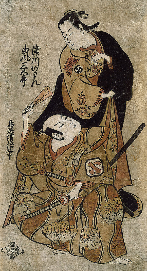Tsugawa Kamon (top) and Arashi Sangorô I (bottom) in a print made by Torii Kiyomasu II in 1727 [Minneapolis Institute of Art (print in the public domain)] |