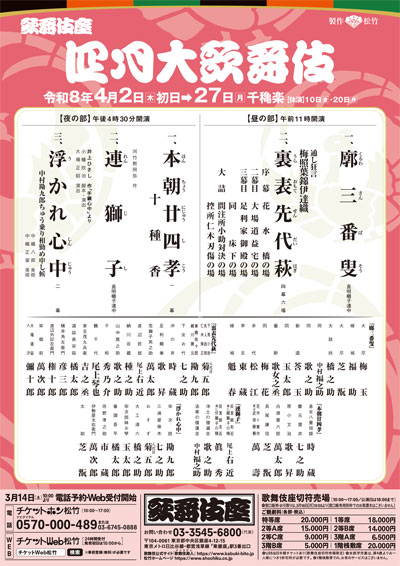 | Dates | 2 ~ 27 April 2026 Shigatsu Ôkabuki April Grand Kabuki |