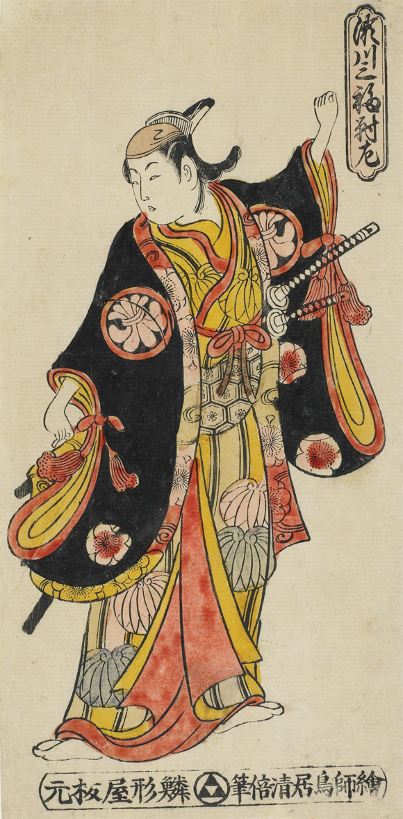 Three Notable Scenes of Segawa Kikunojô I, Left Print, 1741 (print made by Torii Kiyomasu II) |