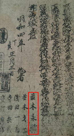 The name of Namiki Eisuke I in a 1764 puppet theater libretto |