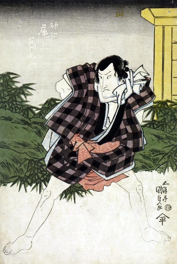 The actor Onoe Kikugorô III playing the role of the yakko Sodesuke in the drama "Reigen Kameyama Hoko", which was staged in the 7th lunar month of 1822 at the Kawarasakiza (print made by Utagawa Kunisada I) |