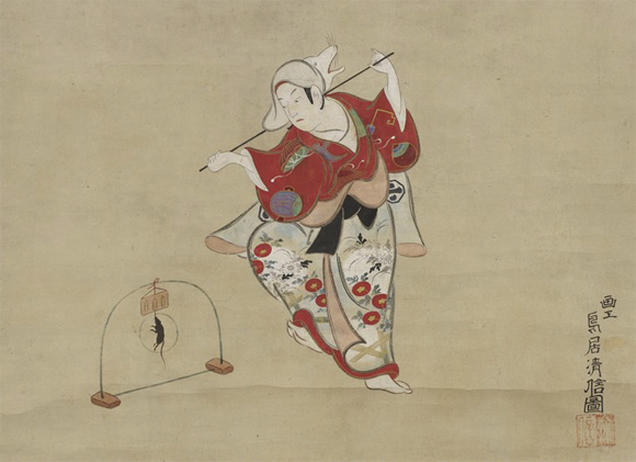 Actor Arashi Sangorô I Performing the Catching the Fox Dance c. 1726 (print made by Torii Kiyonobu I) |